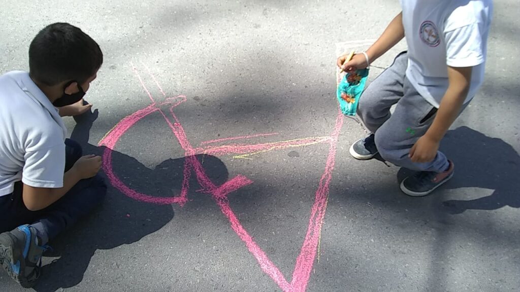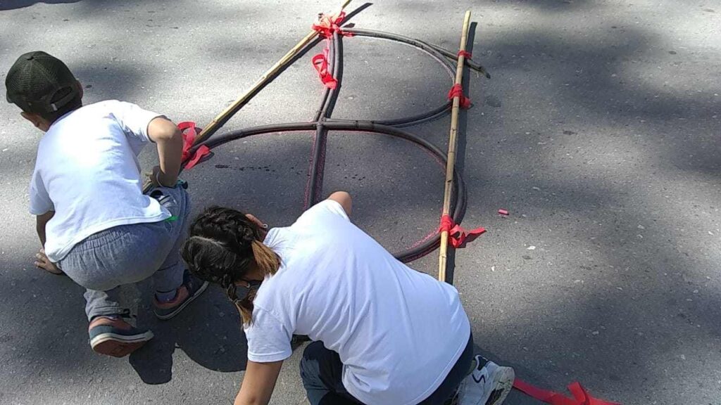 La mañana estuvo colmada de actividades para los niños y jóvenes de edad escolar. Una de esas actividades, consistía en clavar papeles en el suelo, rememorando los nombres de algunos esclavos. Otro momento, consistió en dibujar sobre la calle los símbolos con los que marcaban a los esclavos.