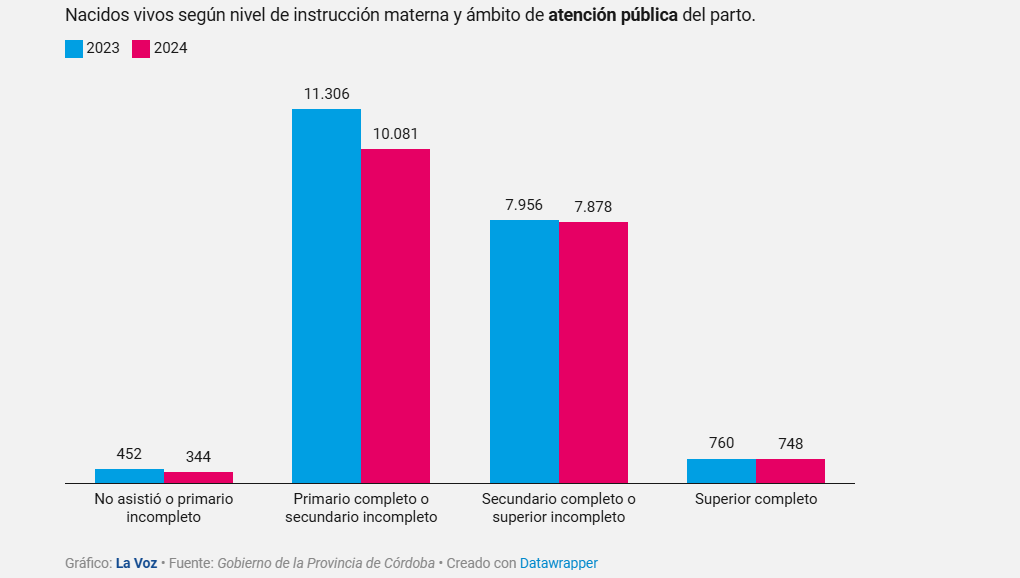 Los nacimientos volvieron a caer en Córdoba en 2024 un 10,6%, pasando de 37.917 bebés en 2023 a 33.887 el año pasado, según las cifras vitales de la Dirección de Estadísticas del Ministerio de Salud de Córdoba.